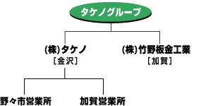 竹野板金工業の金沢営業所と野々市営業所を別会社として設立し、名称を(株)タケノと改める。 |